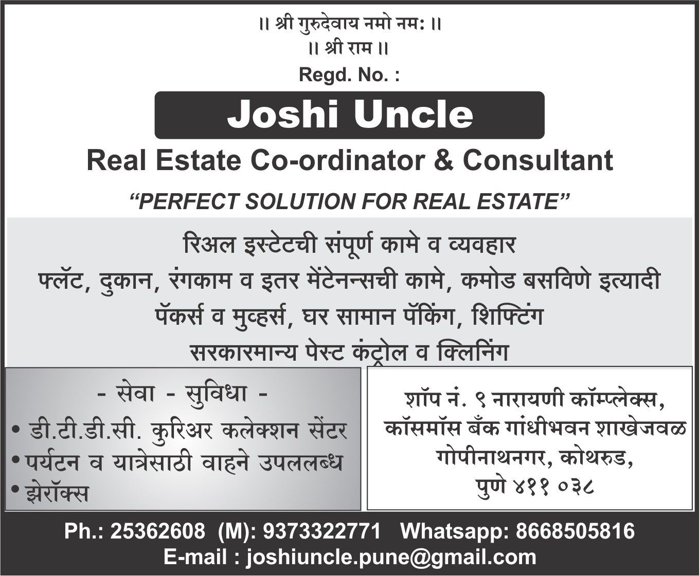 | Shop no 9, Narayan Complex, near Cosmos bank Gandhi bhavan branch, Gopinath nagar, Kothrud, Pune -411038 |