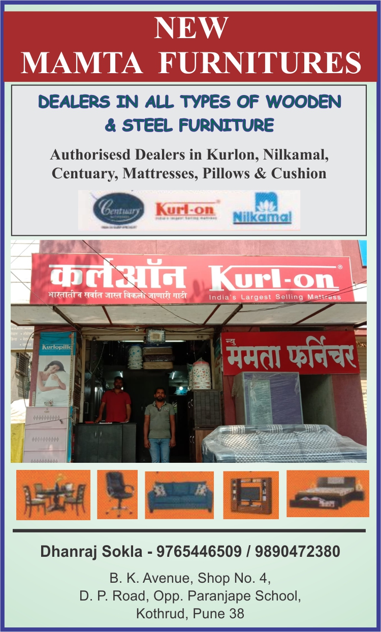 | Dealers in all types of wooden & steel furniture. Authorisesd Dealers in Kurlon, Nilkamal, Centuary, Mattresses, Pillows & Cushion. Phone: 9890472380 |